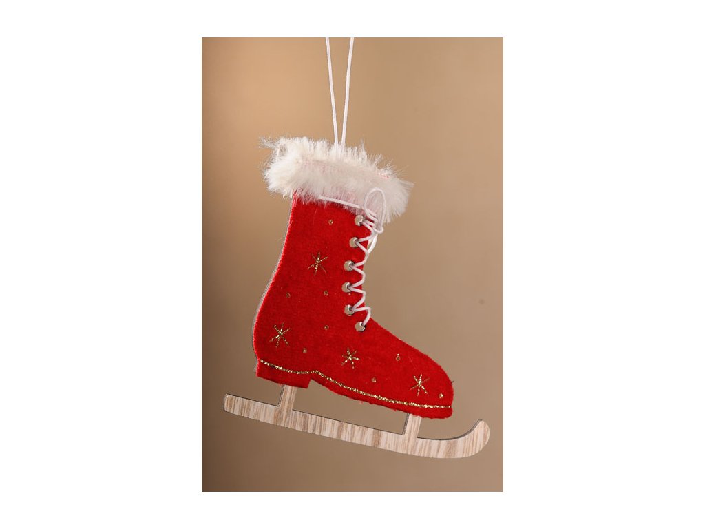Vánoční dekorace brusle v krásné červené barvě se zlatými hvězdičkami a kožešinou - pár 2 ks jednoduše zavěsíte na váš vánoční stromek, girlandu nebo zakomponujete do vánočního věnce popřípadě jiné vánoční dekorace podle vašeho vkusu.