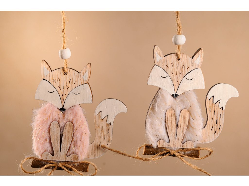 LIŠKA ELIŠKA Vánoční ozdoba 10 cm bílá/růžová
