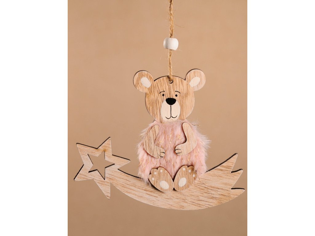 MEDVĚD MÍŠA na koměte Vánoční ozdoba 11 cm bílá/růžová