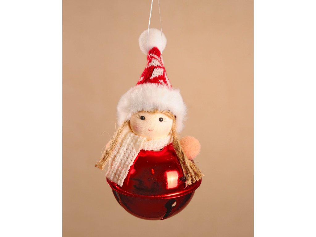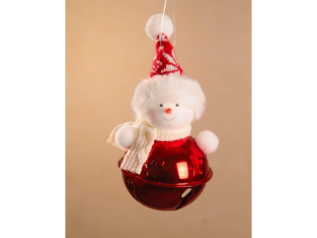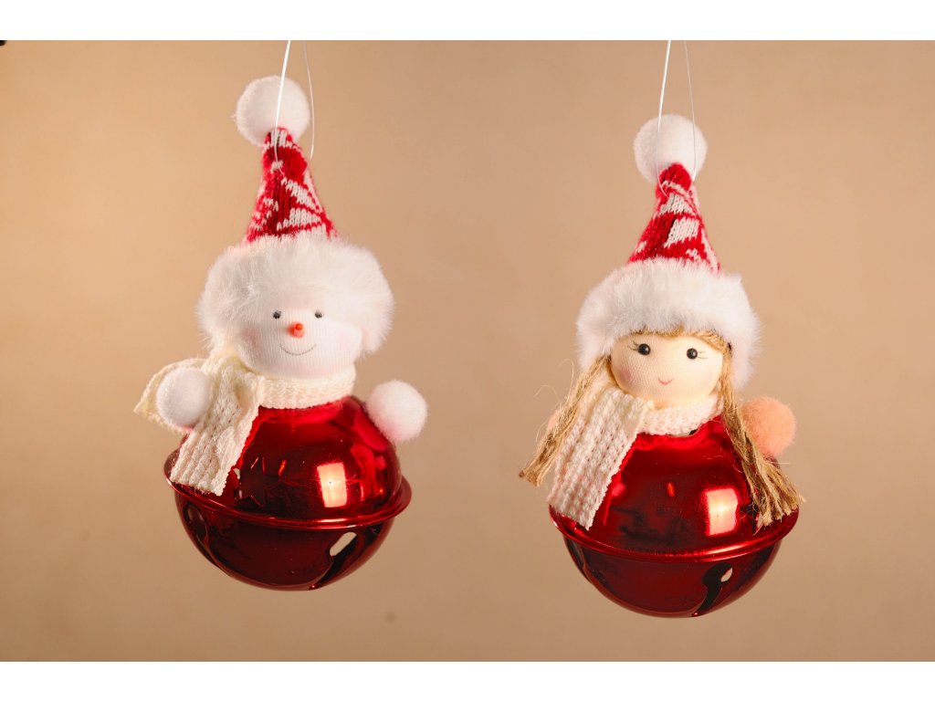 Sněhuláček Petřík a panenka Alenka na červené rolničce 11 cm červená