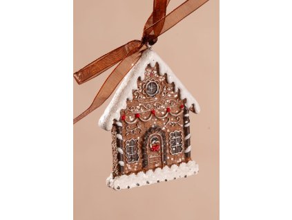 Vánoční ozdoba na zavěšení na stromeček v designu perníkového domečku o výšce 9 cm v setu 6 kusů.