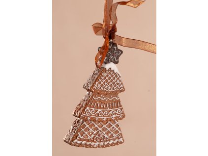 Tento vzhledem věrný perníkový andílek o výšce 10 cm je vyroben z polyresinu, může být proto bez obav a opakovaně ozdobou vašeho vánočního stromečku každý rok.