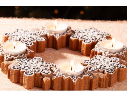 Perníkový svícen o průměru 10 cm je nadčasová vánoční dekorace v designu pečeného perníku.