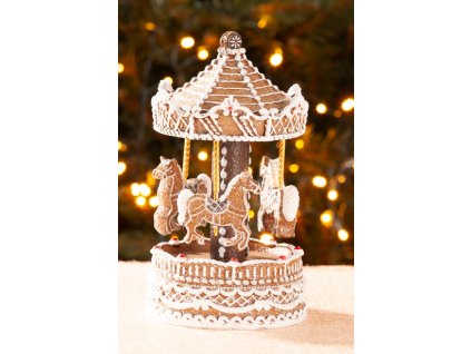 Perníkový kolotoč o výšce 22 cm je nadčasová vánoční dekorace v designu pečeného perníku.