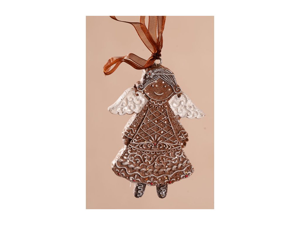 Tento vzhledem věrný perníkový andílek o výšce 10 cm je vyroben z polyresinu, může být proto bez obav a opakovaně ozdobou vašeho vánočního stromečku každý rok.