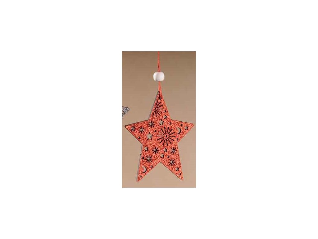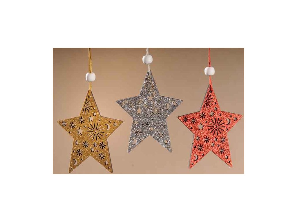 Závěsná ozdoba hvězda třpytková 9 cm červená/zlatá/stříbrná