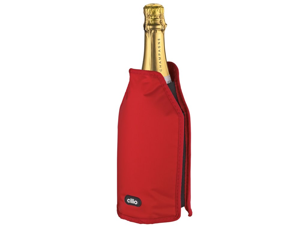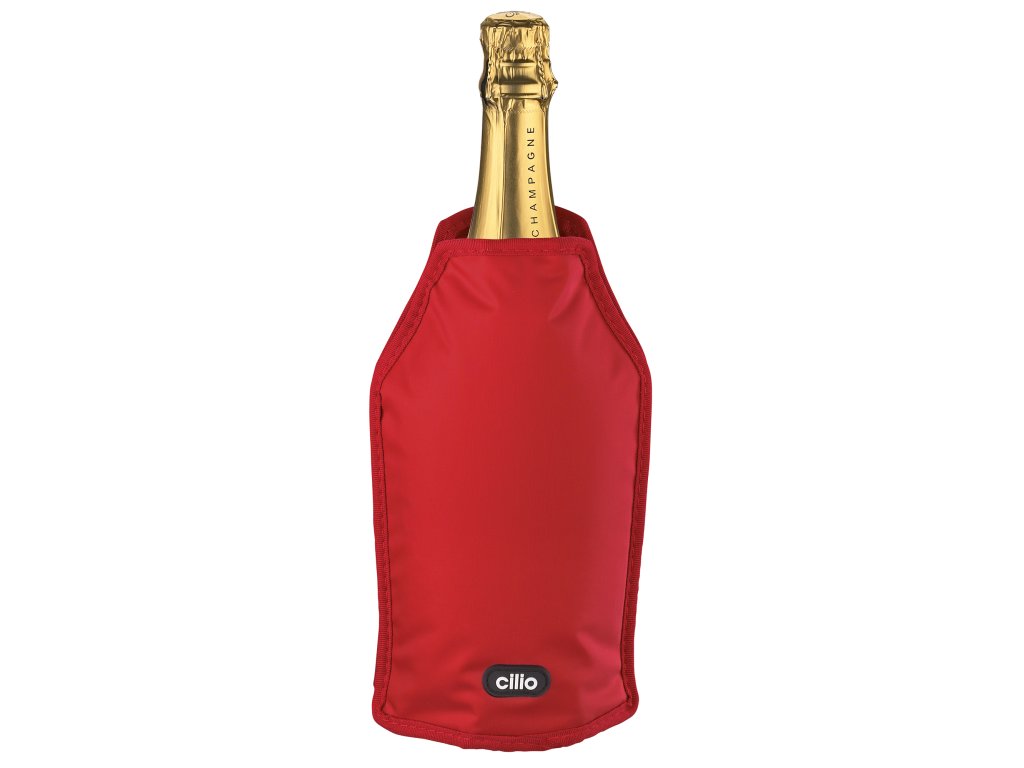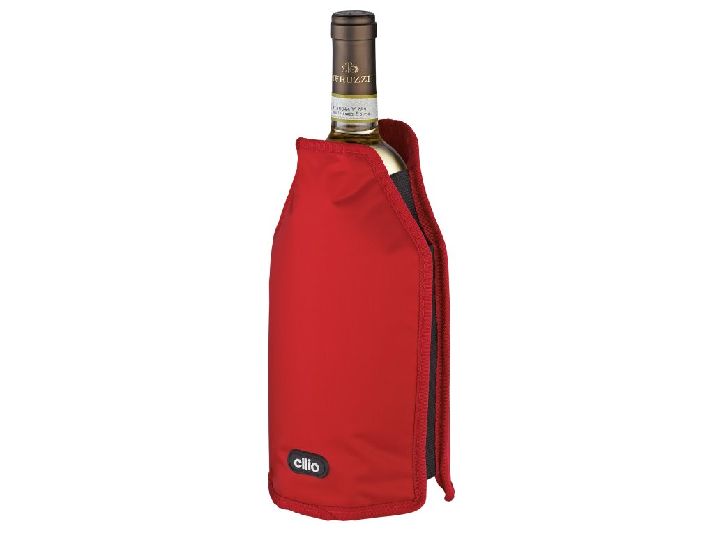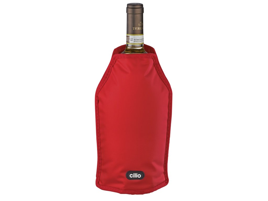 Červený chladící návlek na víno německé značky Cilio pomáhá rychle ochladit nápoj a udržet jej v potřebné teplotě.