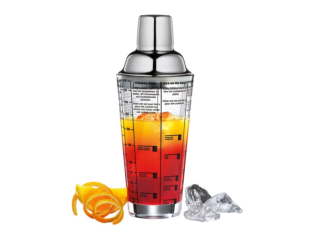 Shaker od Cilio je skvělou pomůckou pro profesionály a hobby barmany. Skleněná nádoba a víko z nerezové oceli je přilnavý a udržuje nápoj v chladu. Integrované síto zabraňuje sklouznutí kousků ovoce do sklenice.