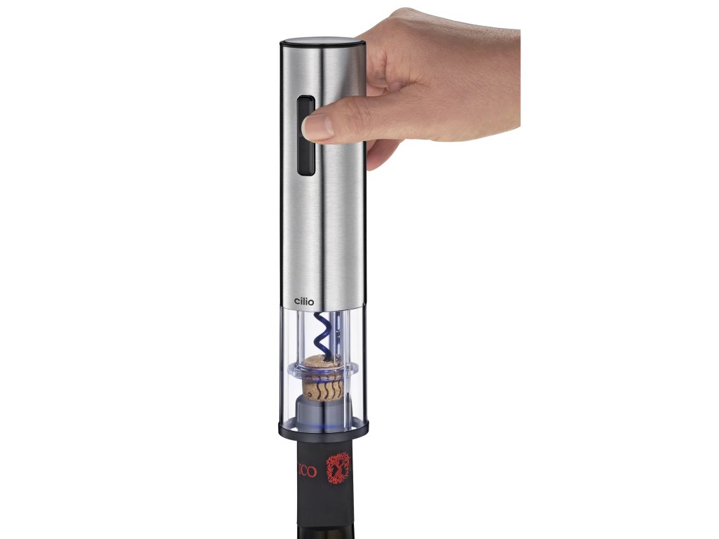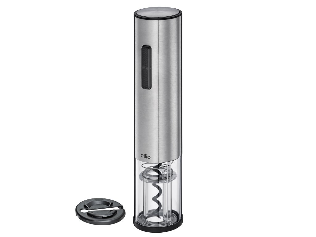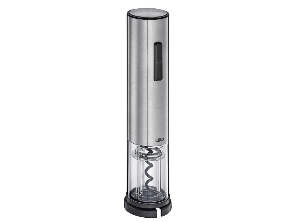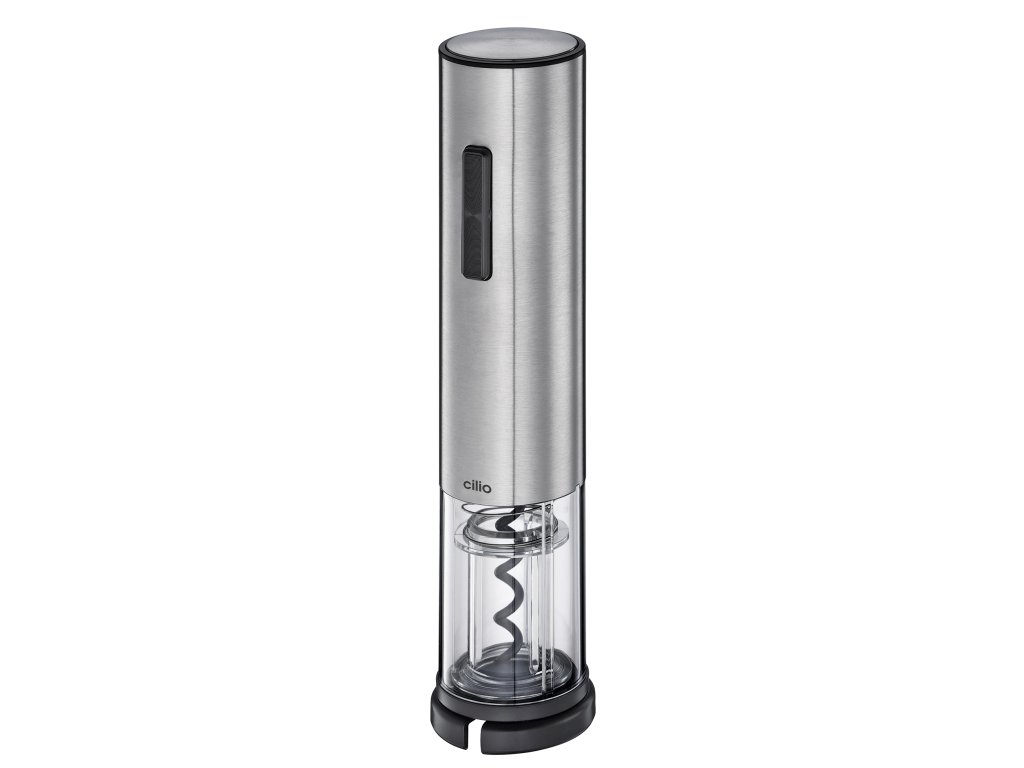 Elektrická vývrtka BRUNELLO od značky Cilio je vybavena LED kontrolkou. Jednoduše a rychle odstraňuje korkové zátky z hrdla lahví s vnějším průměrem až 3,5 cm a vnitřním průměrem 1,75 až 2,3 cm. Než se vysoce kvalitní spirála se speciálním povlakem pustí do práce, odstraňte fólii pomocí integrované řezačky fólie. Jakmile vaši hosté na konci příjemného večera odejdou, můžete vývrtku snadno a pohodlně dobít pro další oslavu. Její čistý design vypadá skvěle ve vitríně se sklenicemi na víno.