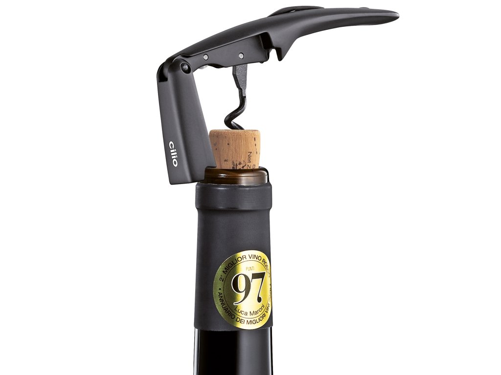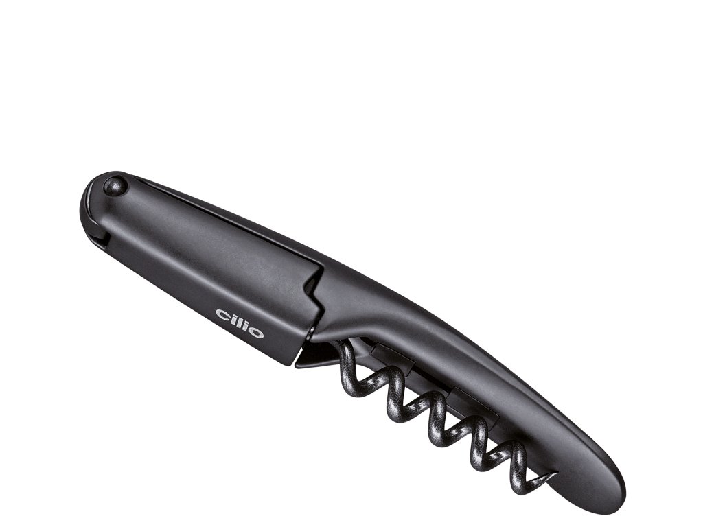 RISERVA Černá křídlová vývrtka na otevírání vinných lahví od špičkové německé značky Cilio. Rychle a bez námahy otevře jakoukoliv lahev vína. Černé provedení.