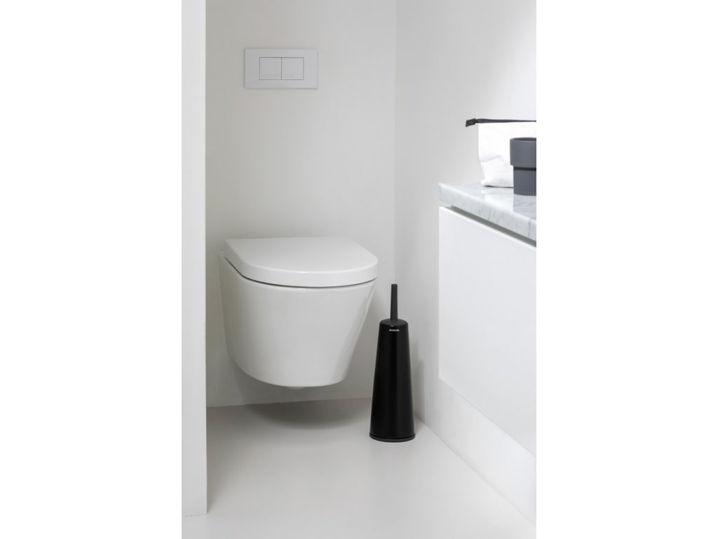 RENEW WC štětka v nadčasové matné černé barvě z kolekce koupelnových doplňků RENEW od Brabantia si zachová svůj krásný design i ve vlhkém prostředí - je vyrobena z antikorozního materiálu.