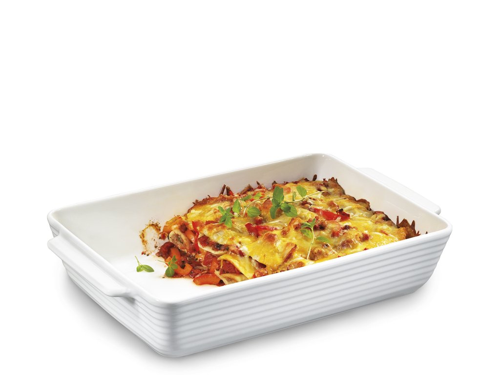 Formy a nádoby na pečení z kolekce BURGUND jsou vyrobeny z bílého tvrzeného porcelánu odolného teplotám do 280 °C. Jsou ideální pro výrobu lasagne, dortů nebo koláčů, ale také maso, zeleninu a těstoviny. Bílý lesklý porcelán vypadá velmi esteticky, takže nádoba vyjmutá z trouby může být položena na prkénko rovnou na stůl a lze z ní přímo váš pokrm servírovat na talíř. Ideální také pro podávání středomořských pokrmů, ryb a příloh.