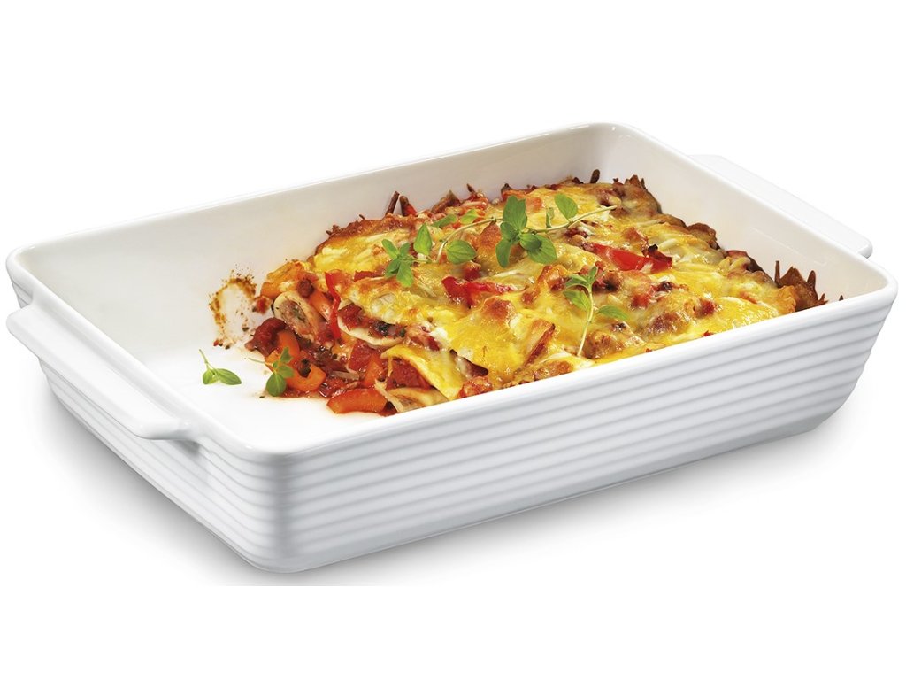 Porcelánová bílá obdélníková velká zapékací miska na nákyp, lasagne, těstoviny, gratinované brambory a maso o rozměrech 40x24,5x7,5 cm od německé značky Küchenprofi.