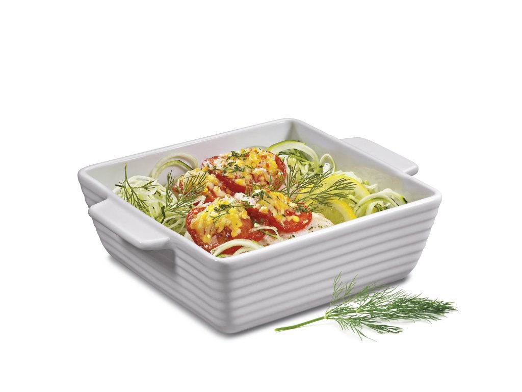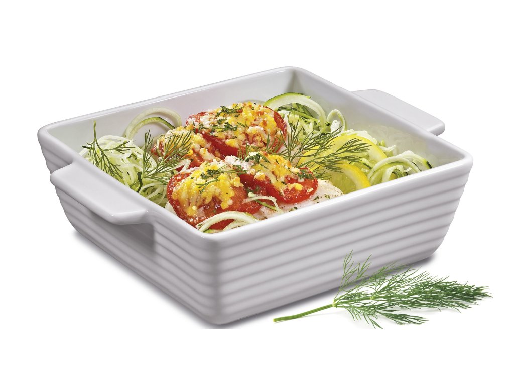 Formy a nádoby na pečení z kolekce BURGUND jsou vyrobeny z bílého tvrzeného porcelánu odolného teplotám do 280 °C. Jsou ideální pro výrobu lasagne, dortů nebo koláčů, ale také maso, zeleninu a těstoviny. Bílý lesklý porcelán vypadá velmi esteticky, takže nádoba vyjmutá z trouby může být položena na prkénko rovnou na stůl a lze z ní přímo váš pokrm servírovat na talíř. Ideální také pro podávání středomořských pokrmů, ryb a příloh.