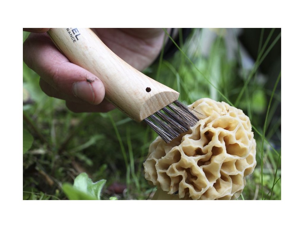 Čepel nožíku vyrobena z nerezové oceli. Nerezová leštěná ocel je díky antikorozním vlastnostem chromu maximálně odolná korozi a prakticky bezúdržbová s excelentní dlouhotrvající ostrostí. Rukojeť je vyrobena z lakovaného bukového dřeva.Upravený tvar čepele je uzpůsoben k ořezávání hub směrem k sobě. Zadní strana čepele je jemně vroubkovaná. Praktický štěteček na čištění hub vyrobený z pravých štětin divočáka. Nůž je opatřen pojistkou ViroBlock.